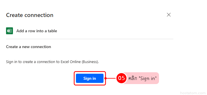 ระบบจะพามาหน้า “Create connection” ให้คลิก “Sign in“
