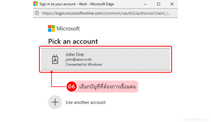 เลือกบัญชีที่ต้องการเชื่อมต่อ