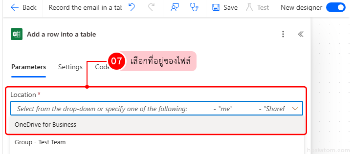 - Location: OneDrive หรือ SharePoint ขององค์กร ในตัวอย่างนี้ขอเลือก OneDrive