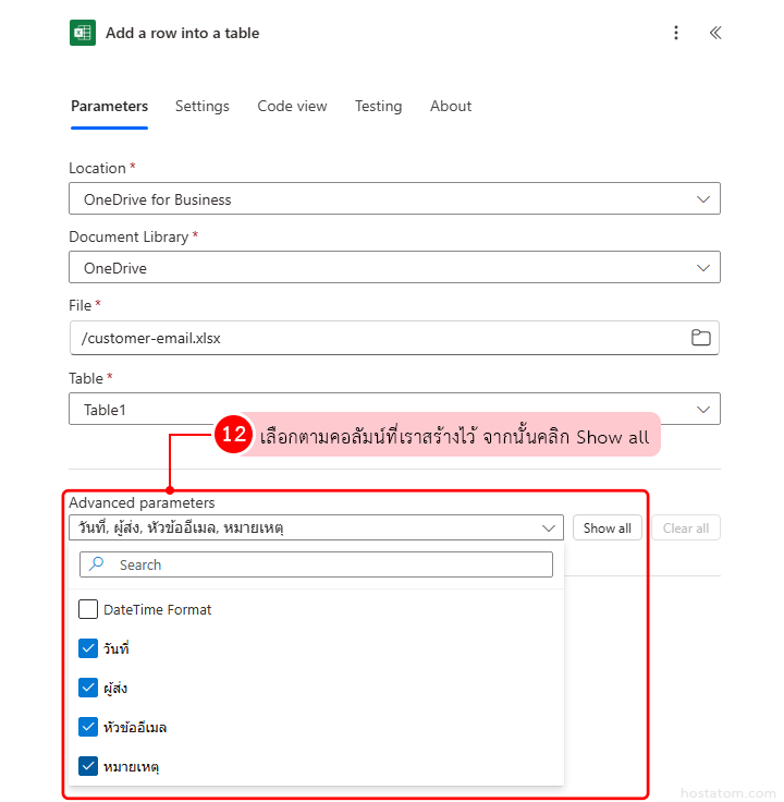 ที่ Advanced Parameter เลือกตามคอลัมน์ที่เราสร้างไว้ จากนั้นคลิก Show all