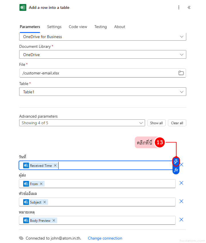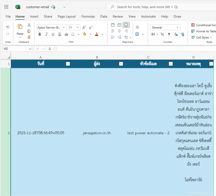 Action จะถูกสร้าง ตามภาพ และ ข้อมูลอีเมลใหม่จะถูกเขียนลง Excel อัตโนมัติทุกครั้งที่ Trigger ทำงาน