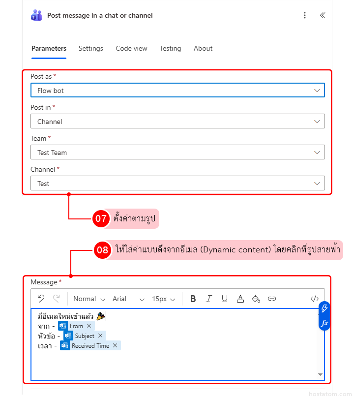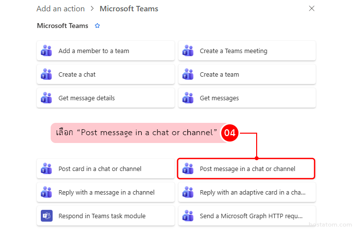 ขั้นตอนที่ 4 – เพิ่ม Action ให้แจ้งเตือนใน Teams