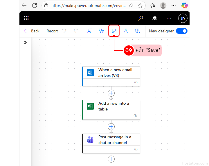 สร้าง Flow แล้วลองส่งอีเมลทดสอบ 1–2 ฉบับ ดูว่า Excel เติมข้อมูลถูกไหม / Teams แจ้งไหม ก่อนเอาไปใช้จริงทั้งทีม - ตั้งชื่อ Flow ให้เข้าใจง่าย