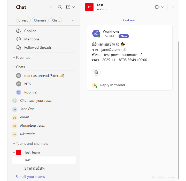 - มีคำว่า “ด่วน” ใน Subject → ให้ส่งแจ้งเตือนเข้า Teams หรือส่งอีเมลต่อไปหาอีกคนหนึ่ง