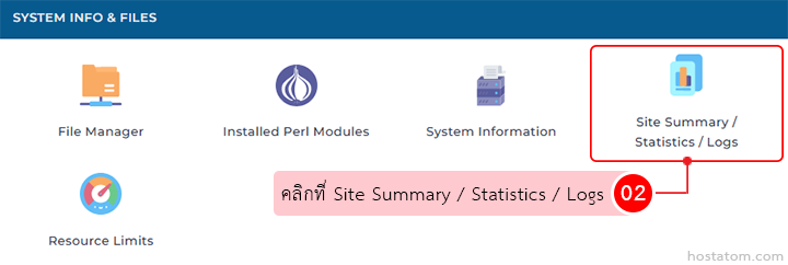 คลิกที่ Site Summary / Statistics / Logs ในหมวด SYSTEM INFO & FILES