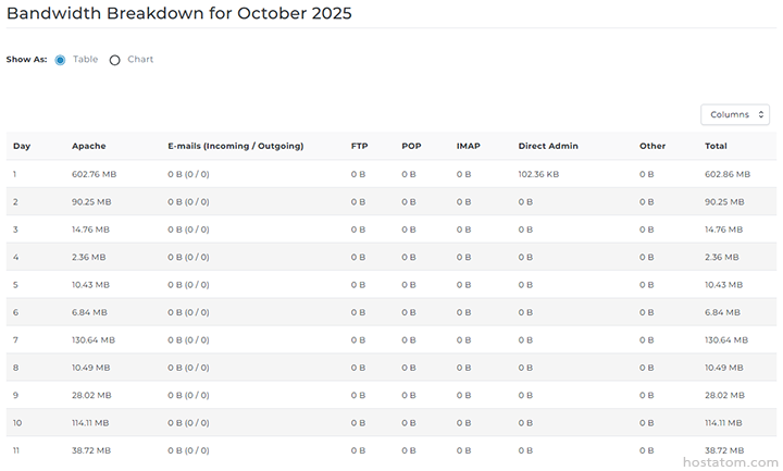 วิธีตรวจสอบประวัติการใช้งาน bandwidth ของผู้ใช้ใน DirectAdmin