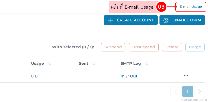 ระบบจะแสดงรายงานการใช้งานอีเมลของโดเมนดังภาพตัวอย่าง โดยสามารถกำหนดการแสดงผลตามที่ต้องการได้