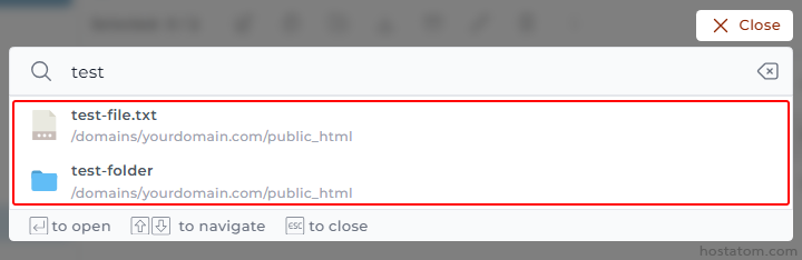 ในระหว่างที่พิมพ์ชื่อไฟล์/โฟลเดอร์ ระบบแสดงไฟล์/โฟลเดอร์ที่ตรงกับชื่อที่กำลังพิมพ์อยู่แบบเรียลไทม์ และจะมีการบอก path ของไฟล์/โฟลเดอร์ดังกล่าวกำกับไว้ด้วย โดยคุณสามารถคลิกที่ไฟล์/โฟลเดอร์นั้น เพื่อไปยังหน้าที่มีไฟล์/โฟลเดอร์นั้นอยู่ได้