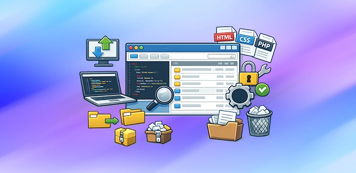 File Manager คือเครื่องมือจัดการไฟล์ที่ใช้งานผ่านหน้าเว็บโฮสติ้ง เช่น DirectAdmin หรือ cPanel โดยไม่ต้องติดตั้งโปรแกรมเพิ่ม เหมาะมากสำหรับผู้เริ่มต้นเพราะใช้งานง่าย เข้าใจไว และมีฟีเจอร์พื้นฐานครบ เช่น
