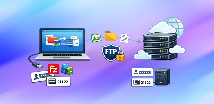 FTP หรือ File Transfer Protocol คือวิธีโอนย้ายไฟล์ระหว่างคอมพิวเตอร์กับเว็บโฮสติ้งผ่านโปรแกรม FTP อย่าง FileZilla, WinSCP หรือ Cyberduck โดยต้องมีข้อมูลสำหรับเชื่อมต่อ เช่น