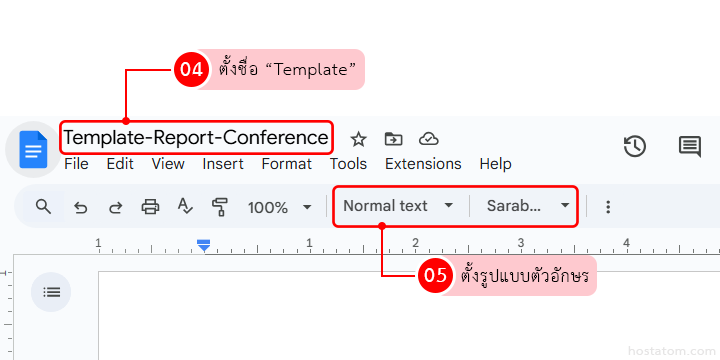- ตั้ง ชื่อเอกสาร (ตรงมุมซ้ายบน) ให้ชัดเจน เช่น