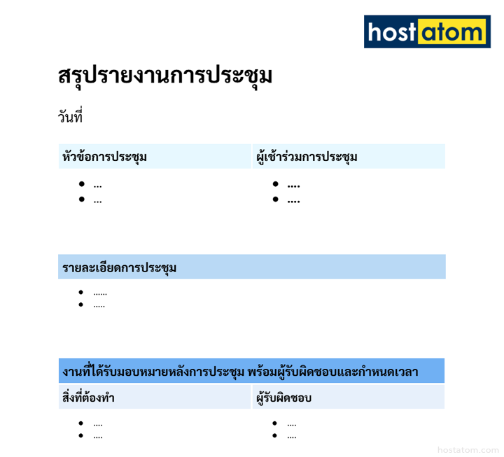 เพราะแต่ละแบบจะมีโครงที่ต่างกัน เช่น ช่องชื่อ – นามสกุล, วันที่, หัวข้อประชุม ฯลฯ