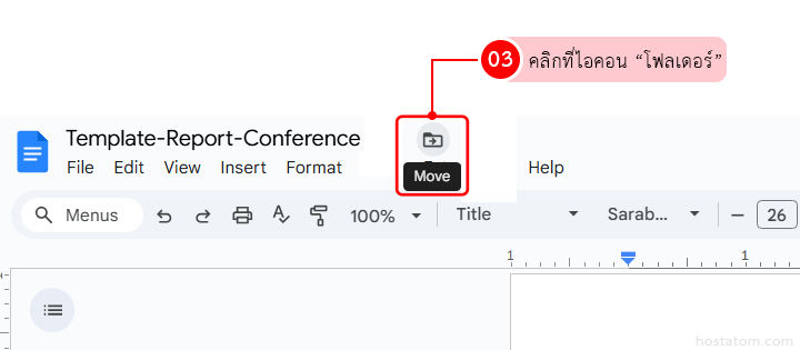 คลิกที่ชื่อไฟล์ด้านบน แล้ว กดไอคอนรูป “โฟลเดอร์” (Move)