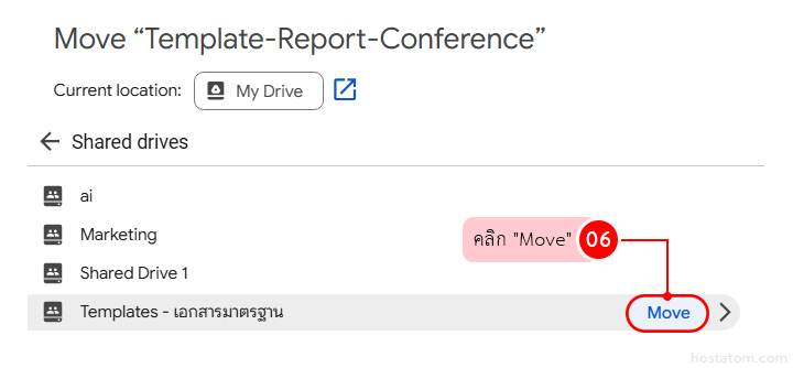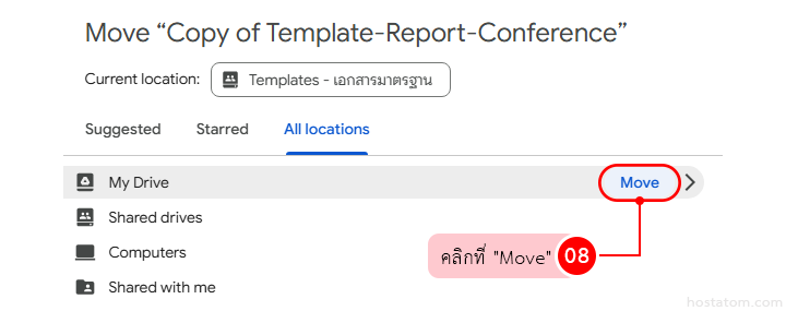 ย้ายสำเนาไปไว้ในโฟลเดอร์งานของตัวเอง (My Drive หรือโฟลเดอร์โปรเจกต์ใน Shared Drive)