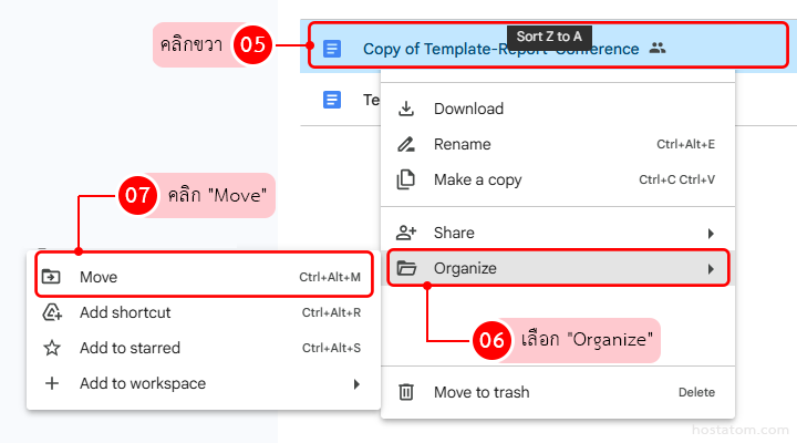 คลิกขวาที่ไฟล์ที่ทำสำเนา หรือ Copy เลือก “Organize” เลือก Move