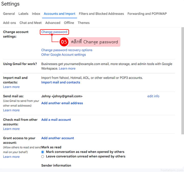 คลิกที่ Change password ในหัวข้อ Change account settings: