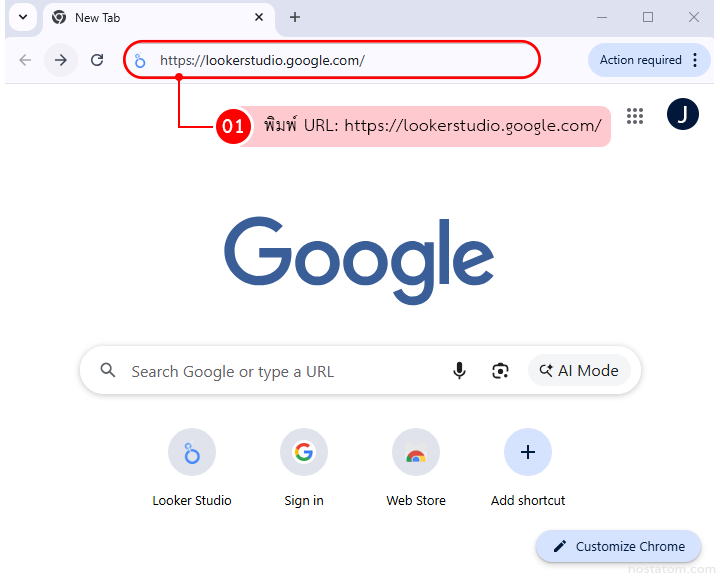 พิมพ์ URL: https://lookerstudio.google.com/