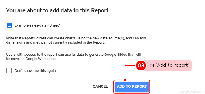 “Add data to report” (เพิ่มข้อมูลอะไรเข้ารายงาน)
