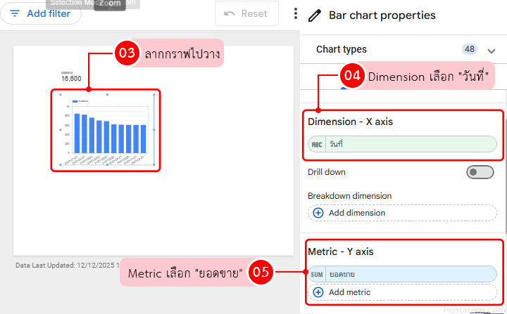 - Dimension = เลือก “วันที่“