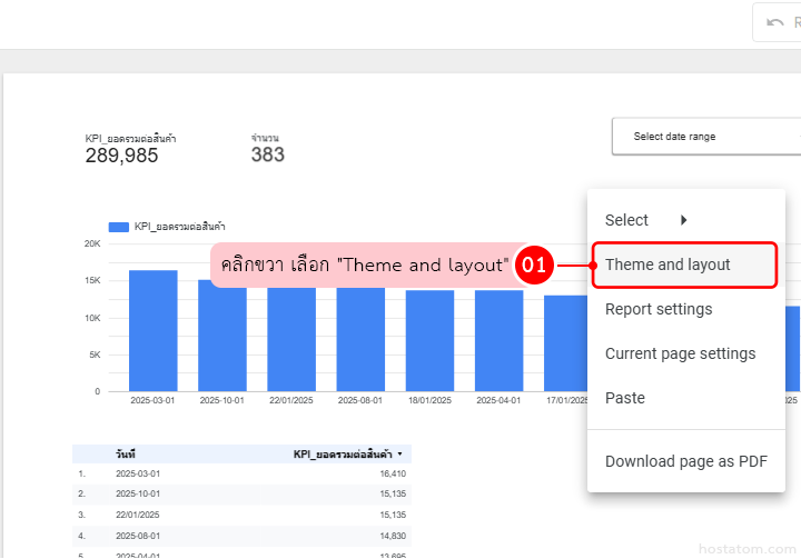 - กลับมาที่ Looker Studio → ใน Data Source ต้องกด Reconnect/Fields เพื่อให้เห็นคอลัมน์ใหม่ แล้วค่อยนำไปใช้ในกราฟ/ตาราง
