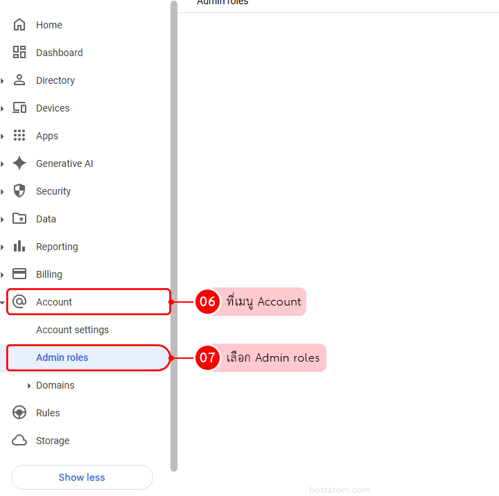 ทีม hostatom ช่วยวางโครงสร้างสิทธิ์แอดมิน (Roles) ตั้งค่า Admin Console และย้ายอีเมล/ข้อมูลเข้า Google Workspace แบบเป็นขั้นตอน
