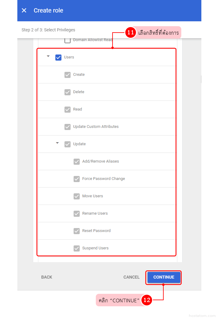 คลิก CONTINUE เพื่อไปขั้นตอนถัดไปคือการกำหนดสิทธิ์