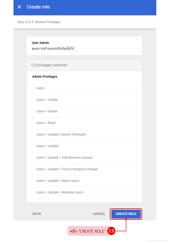 แต่หากครบตรงตามที่ต้องการแล้วให้คลิก CREATE ROLE
