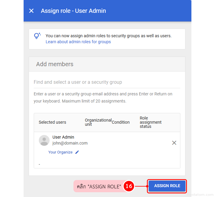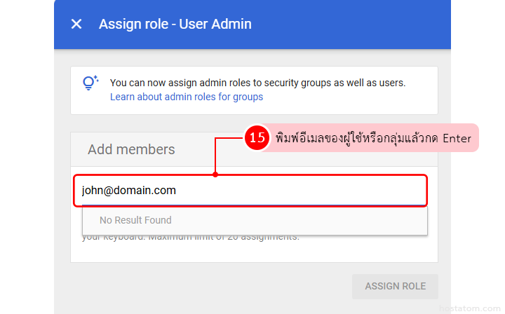 เมื่อเพิ่มเรียบร้อยแล้ว ให้คลิกที่ ASSIGN ROLE