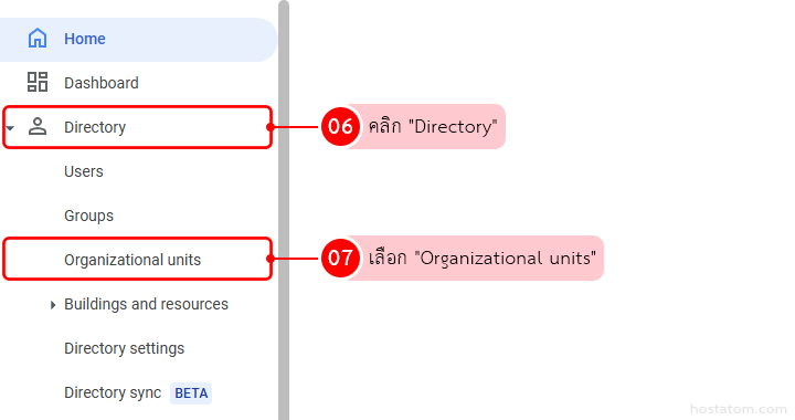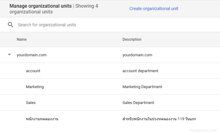 ไปที่เมนู “Directory” เลือก “Organizational units”