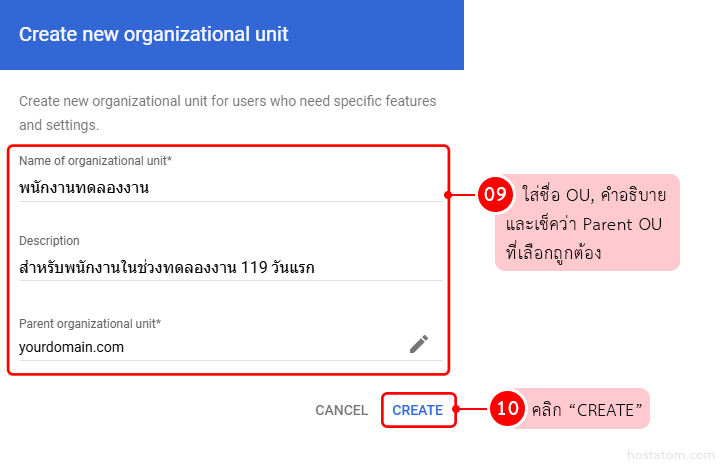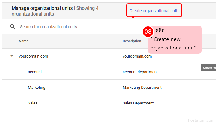 จากนั้นคลิก ” Create new organizational unit”