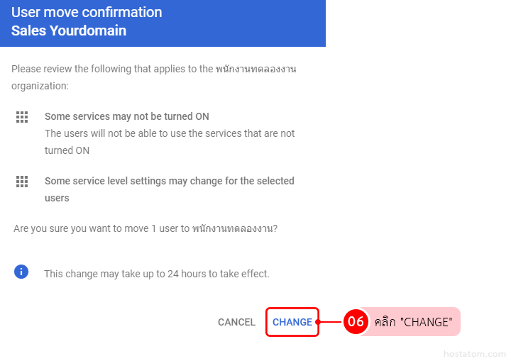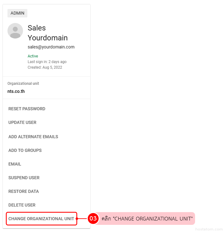 คลิกที่ “CHANGE ORGANIZATIONAL UNIT”