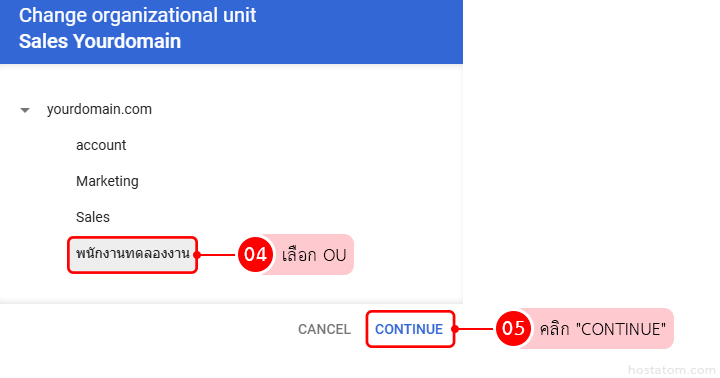 เลือก OU ที่ต้องการ จากนั้นคลิก “CONTINUE”