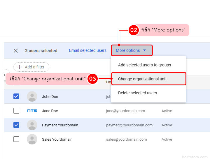 จากนั้นไปที่ “More options” เลือก “Change organizational unit”