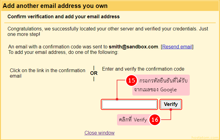กรอกรหัสยืนยันที่ได้รับจากเมลของ Google จากนั้นคลิกที่ Verify