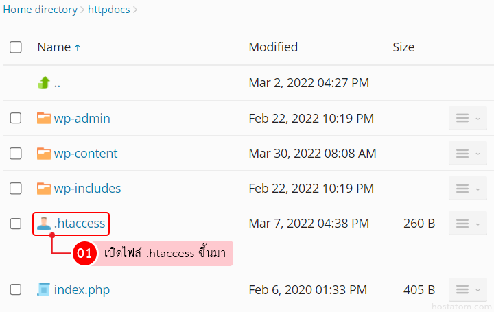 กรณีที่เว็บไซต์มีไฟล์ .htaccess อยู่แล้ว