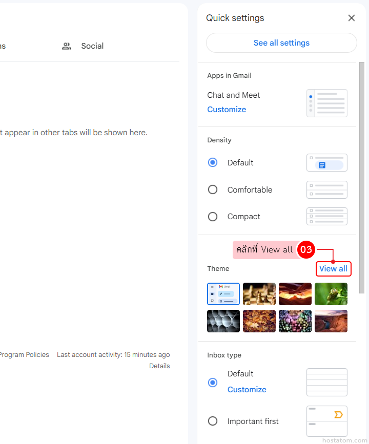 สำหรับผู้ที่ใช้บริการเมลของ Google (Gmail) สามารถเลือกเปลี่ยนธีมได้ตามได้ตามขั้นตอนต่อไปนี้