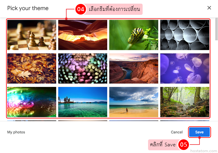เลือกธีมที่ต้องการเปลี่ยน จากนั้นคลิกที่ Save
