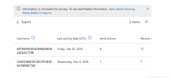 หากใน Microsoft 365 Admin Center รายงานแสดงชื่อผู้ใช้เป็นรหัสหรือข้อมูลไม่ระบุตัวตน ถือเป็นการตั้งค่ามาตรฐานของ Microsoft เพื่อปกป้องความเป็นส่วนตัวของผู้ใช้