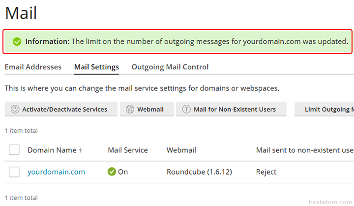 ระบบจะแจ้งว่าได้อัปเดตจำนวนการส่งอีเมลของโดเมนดังกล่าวเรียบร้อยแล้ว