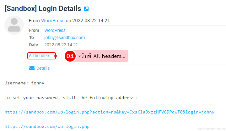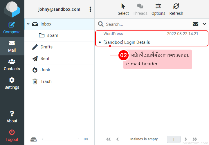 วิธีตรวจสอบ e-mail header ใน Roundcube Webmail
