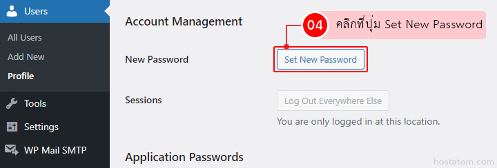 เลื่อนลงมาด้านล่าง ที่หัวข้อ Account Management => New Password คลิกที่ปุ่ม Set New Password