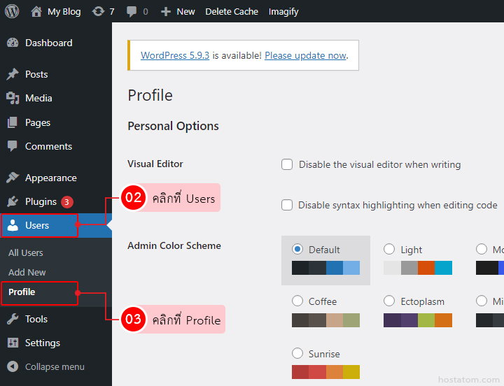 ที่แถบเมนูด้านขวามือเลือก Users > Your Profile