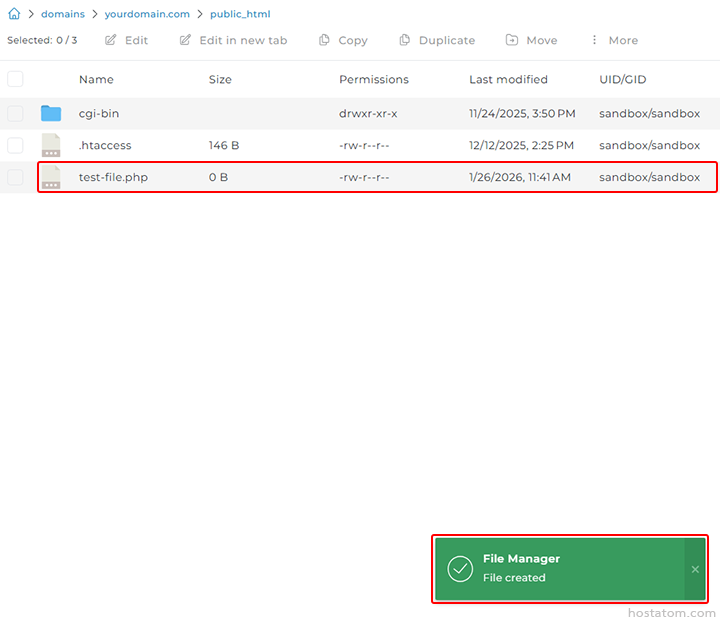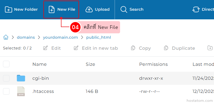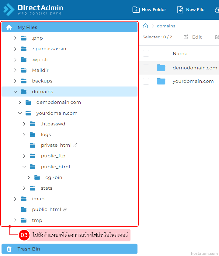 วิธีสร้างไฟล์หรือโฟลเดอร์ผ่าน File Manager ใน DirectAdmin