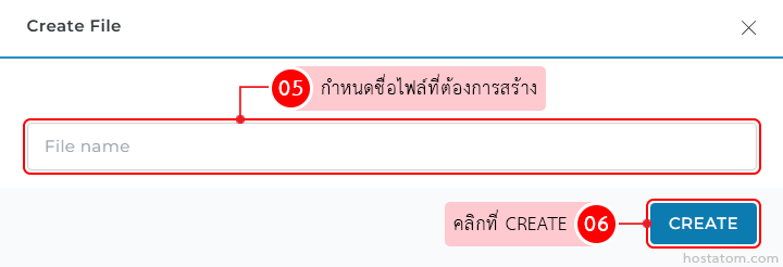 กำหนดชื่อไฟล์ที่ต้องการสร้าง จากนั้นคลิกที่ CREATE