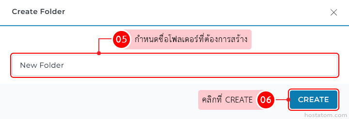 กำหนดชื่อโฟลเดอร์ที่ต้องการสร้าง จากนั้นคลิกที่ CREATE