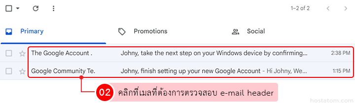 คลิกที่เมลที่ต้องการตรวจสอบ e-mail header