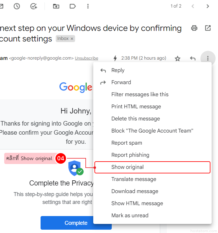 วิธีตรวจสอบ e-mail header ใน Gmail
