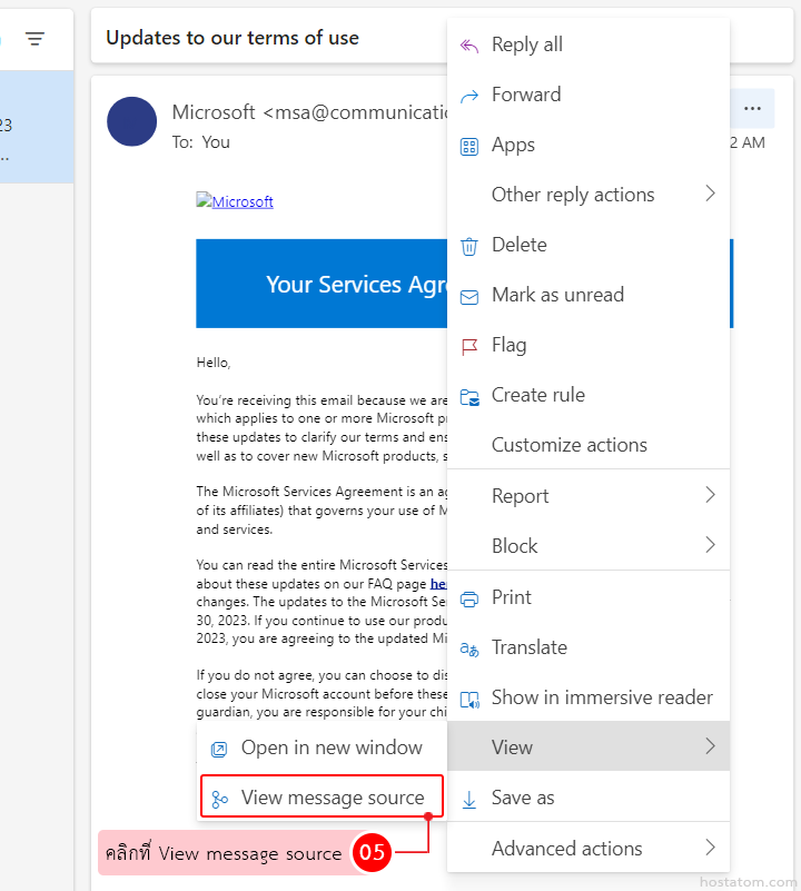 คลิกที่ View message source
