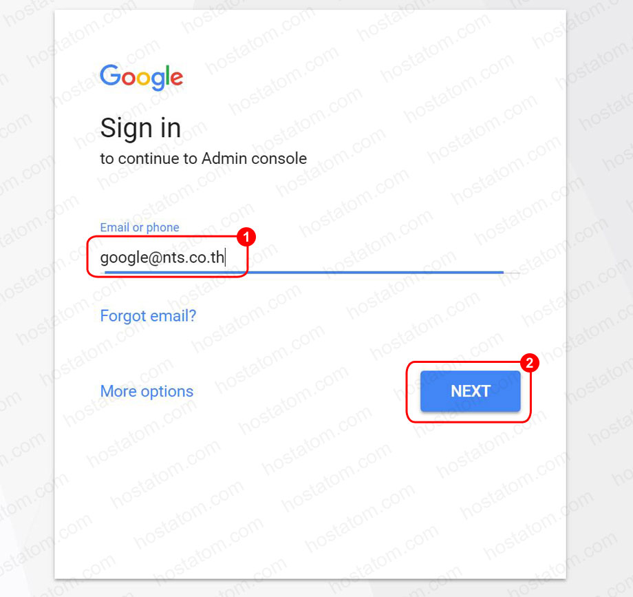 1.ให้ Login เข้าสู่หน้า Admin Console ที่ https://admin.google.com