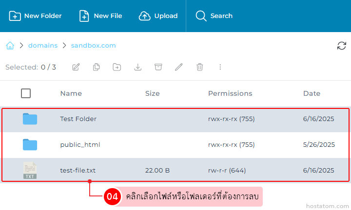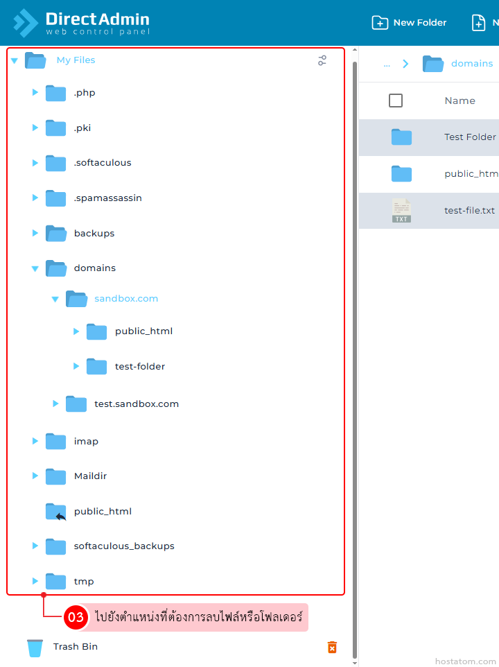 สำหรับผู้ที่ใช้ control panel ของ DirectAdmin สามารถลบไฟล์ที่ไม่ต้องการหรือไม่ได้ใช้งานแล้วผ่าน File Manager ได้ตามขั้นตอนต่อไปนี้